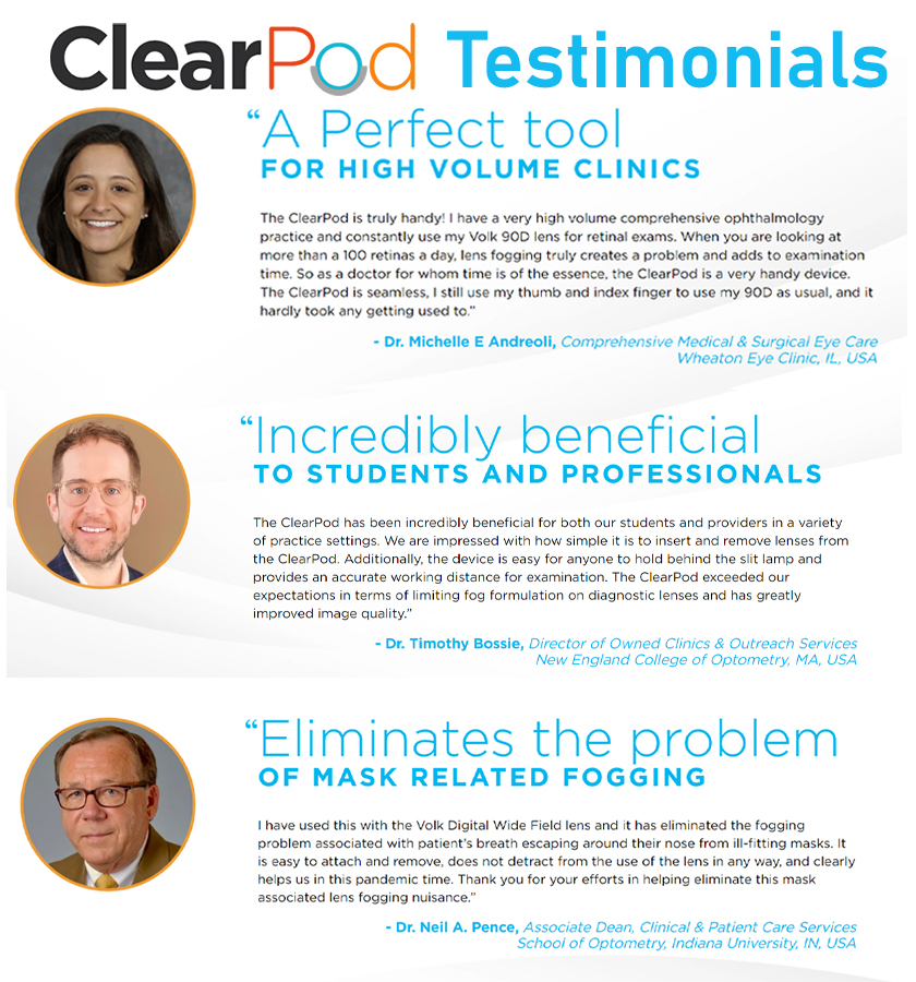 The patent-pending ClearPod results in a fog-minimizing solution and provides an accurate working distance for Doctors.